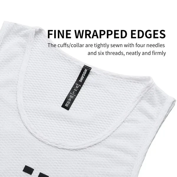 WOSAWE Men's Cycling Summer Lightweight Breathable Undershirt Vest Product Features: Mesh breathable fabric Collar and cuffs wrapped Moisture wicking and quick drying Stretch design for a comfortable fit Eight reflective squares on the chest for safe riding at night Package included: 1 x Cycling Sleeveless Undershirt Specification: Name: Cycling sleeveless undershirt Colour: White Gender: Men Material: Polyester Size: S, M, L, XL, 2XL, 3XL Weight:(XL) About 97G/0.21LB Applications: Cycling, Running, Hiking, Motorbike, Mountaineering and other outdoor sports