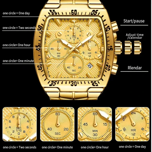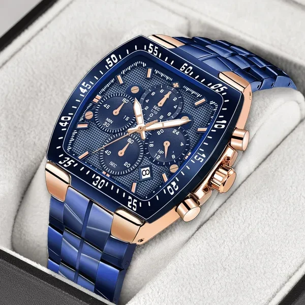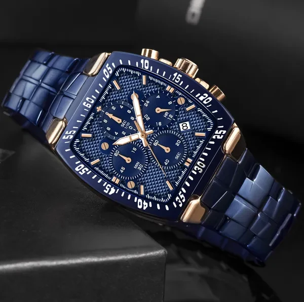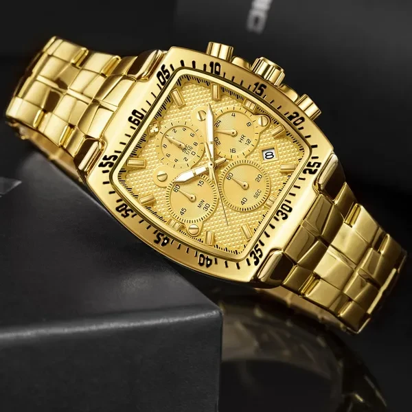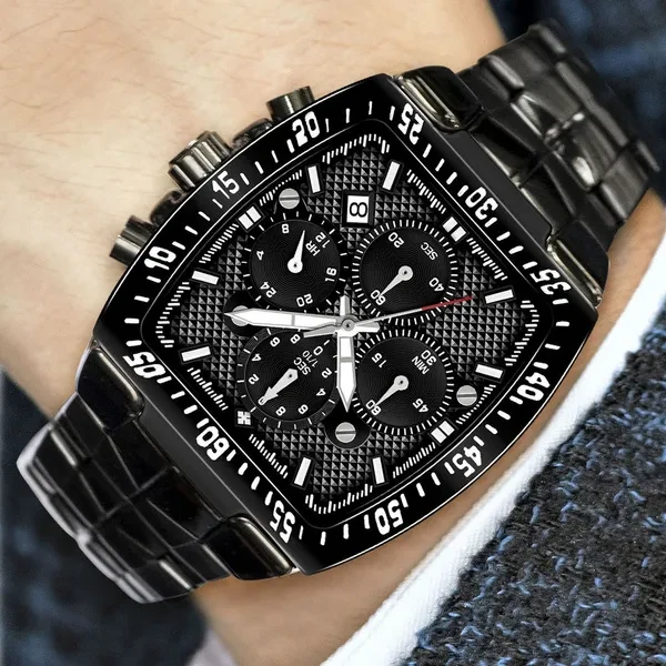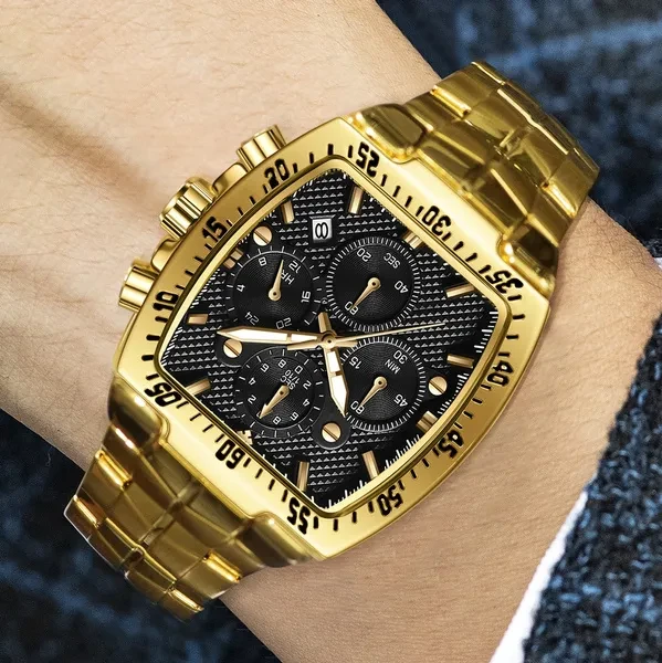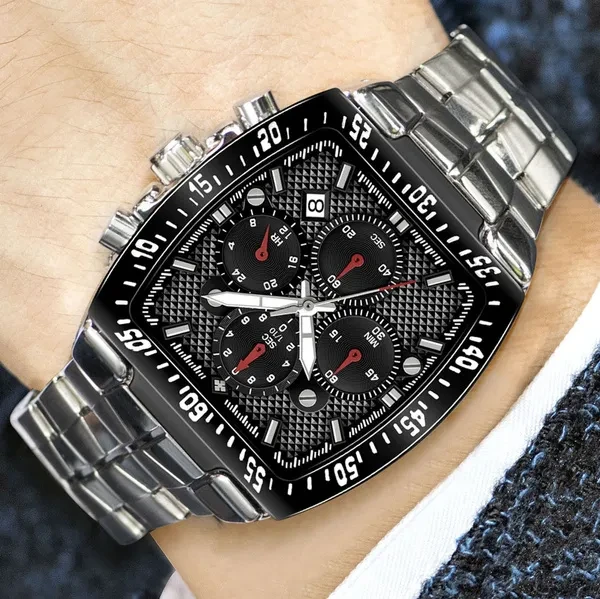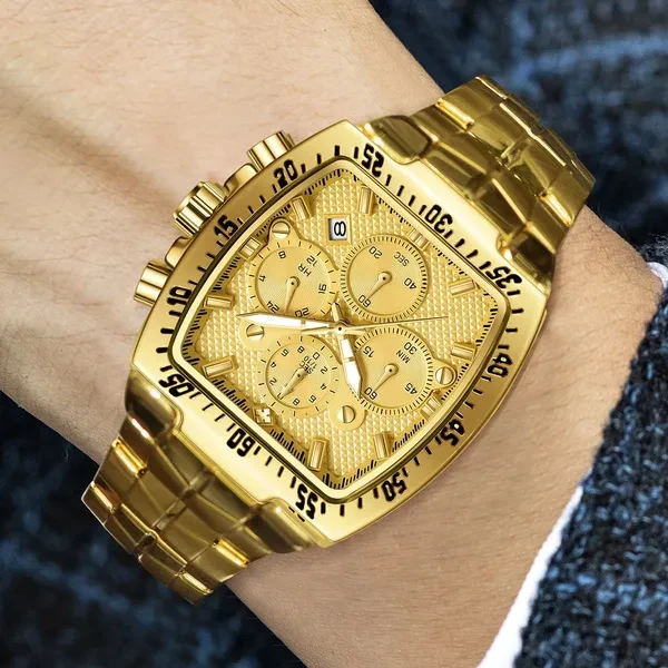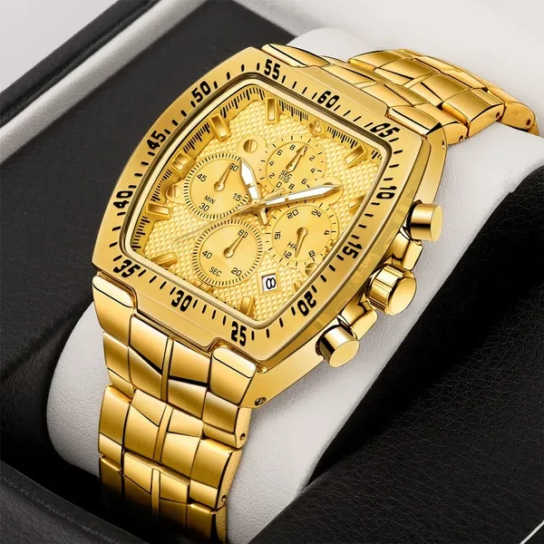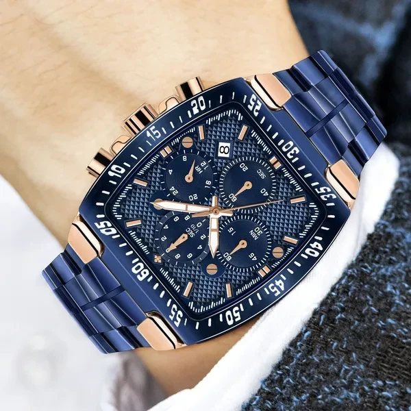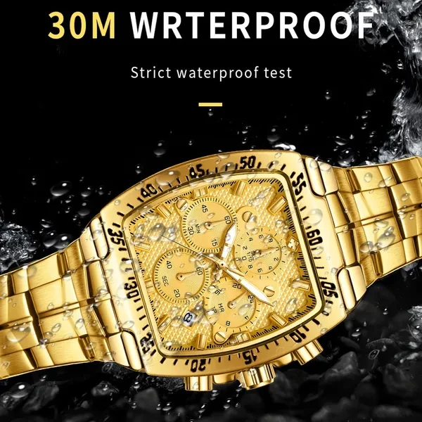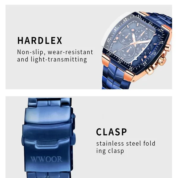 WWOOR 2021 New Fashion Men's Watch Top Brand Luxury Square Sports Military Chronograph Men's Gold Black Blue Large Dial Quartz Wrist Watch Waterproof Luminous Clock Relogio Masculino