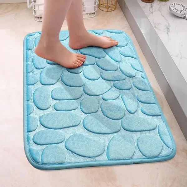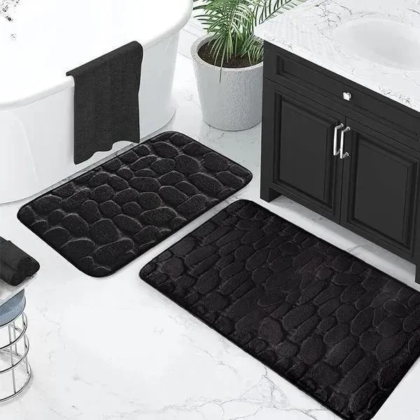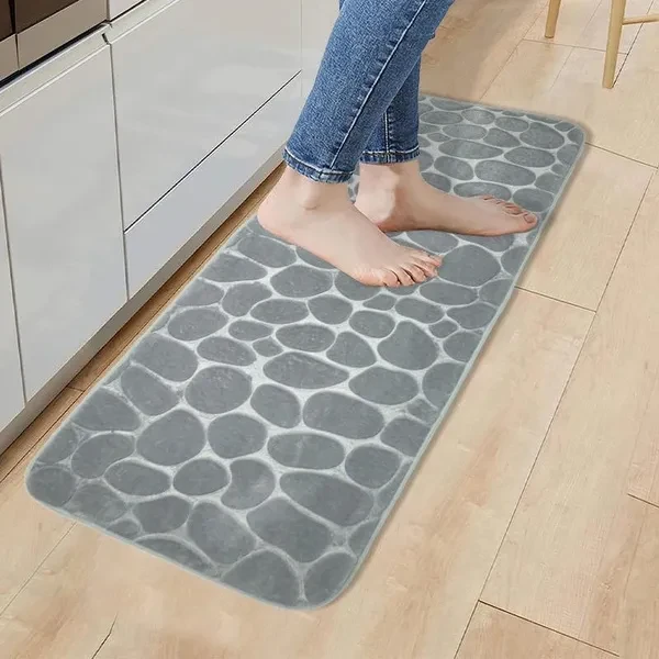 YIMEIS 1pc Memory Foam Bathroom Floor Mat, Pebble Embossed Bath Mat, Quick Absorbent and Washable Bathroom Floor Mat, Non-Slip Thick Soft and Comfortable Shower Floor Mat, Bathroom Accessories , Kitch