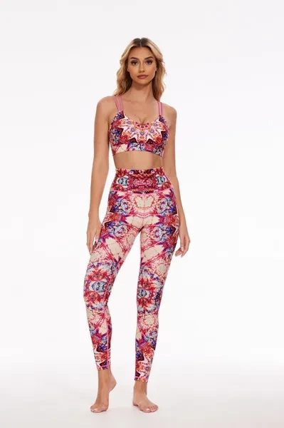 Pattern Description: The pattern draws inspiration from Mandala paintings, which represent an exotic style, often utilized in psychological therapy. It characterized by repetitive patterns revolving around a central point. Using colors like purplish-red, yellow, blue, and green, the overall design depicts an irregular yet symmetrical look. The intricate variations in lines and rich colors form a unique totemic style, evoking a sense of ancient and mysterious feeling. The pattern encourages you to introspect into the enigmatic inner world, aiming for healing and self-relief during your exercise routine. Product Features: High-waisted design perfectly shapes, supports and flatters any body types. No small elastic band at the top. No side seams for extra flattering fit and comfort. Stretchy and light fabric for a smoothing, second-skin feel. Fabric: Made with 84% RPET and 16% spandex from recycled plastic bottles and it is 100% recyclable! - Four-way stretch, breathable and anti-bacterial.
