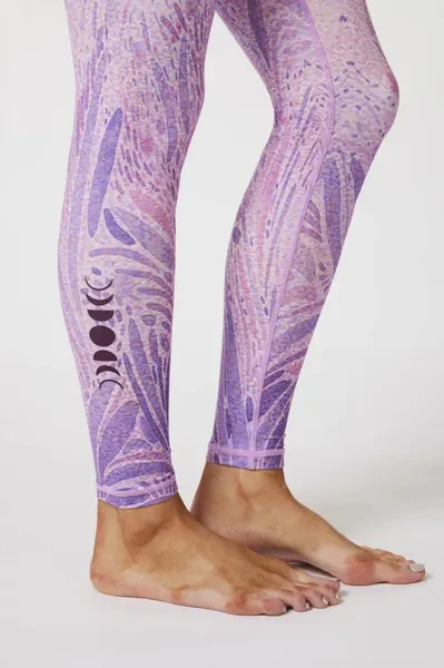 Pattern Description: Peaceful colors, graceful vibes and harmonious feelings. The print features a beautiful picture of the grass swaying in the wind and showing vitality under the nourishment from the earth and rain. The forest goddess, patroness of forests and animals, rises from the moving grass to celebrate female power and praise the contribution women make to society. Product Features: High-waisted design perfectly shapes, supports and flatters any body types No small elastic band at the top No side seams for extra flattering fit and comfort Pair it with our matching Goddess Strappy Bra for a totally unique and dreamy look Fabric: Made with 84% RPET and 16% spandex from recycled plastic bottles and it is 100% recyclable! - Four-way stretch, breathable and anti-bacterial. Model Info: Natali// Height: 5'7 // Bust 34.3” // Waist 24.4” // Hips 36.6//SILVERWIND size S in tops bottoms Poli/Height: 5'7 // Bust 33.5” // Waist 23.6” // Hips 35” //SILVERWIND size S in tops bottoms