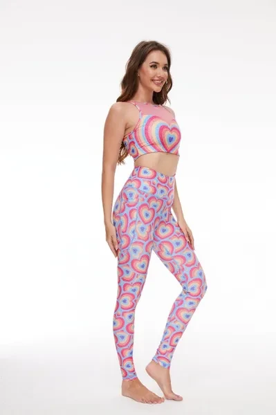 Pattern Description: Love is all about understanding and inclusivity. To celebrate LGBTQ love, our designer crafted a colorful Powerpuff heart pattern inspired by acceptance. Bold, vibrant, and full of pride, it celebrates love in its diverse and colorful forms, paying tribute to the beauty of the LGBTQIA+ community. Product Features: High-waisted design perfectly shapes, supports and flatters any body types No small elastic band at the top   Two side-pockets for essentials No side seams for extra flattering fit and comfort Stretchy and light fabric for a smoothing, second-skin feel Fabric: Made with 84% RPET and 16% spandex from recycled plastic bottles and it is 100% recyclable! - Four-way stretch, breathable and anti-bacterial. Model Info: Maria // Height: 5'74  // Bust 33.9” //  Waist 24.0” // Hips 35.4 // SILVERWIND size Regular S